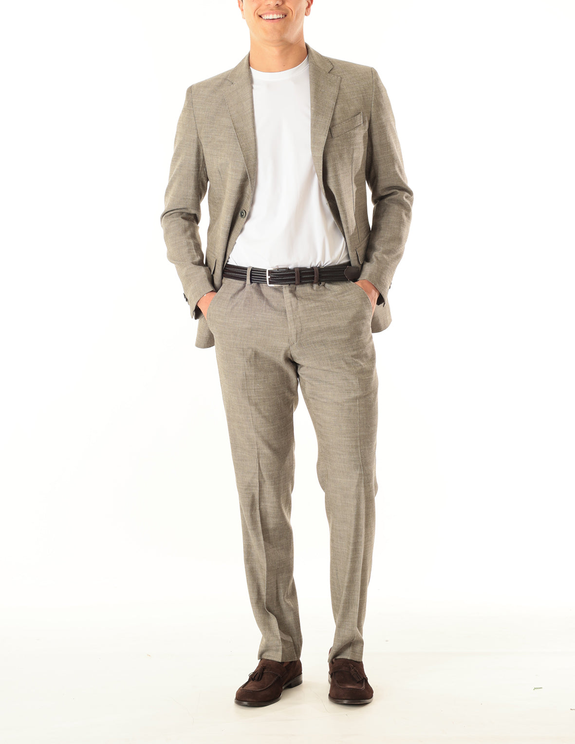 Estremamente versatile, può essere indossato con una camicia per un outfit più formale oppure con una T-shirt per un’interpretazione più rilassata e contemporanea. Un completo pensato per adattarsi a più occasioni, dal lavoro al tempo libero, mantenendo sempre un’immagine curata e coerente.