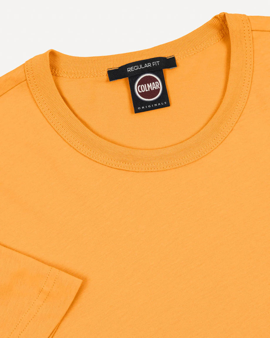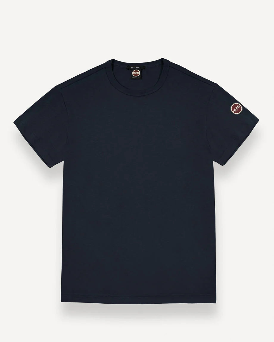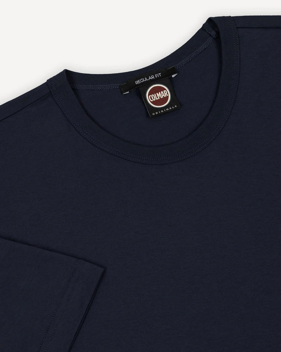 Il taglio girocollo e la linea pulita la rendono estremamente versatile: ideale da indossare da sola nella stagione più calda o sotto felpe, cardigan e giacche nelle mezze stagioni. Il design essenziale è valorizzato dall’iconico logo Colmar applicato sulla manica sinistra, un dettaglio discreto ma distintivo che richiama l’heritage sportivo del brand.