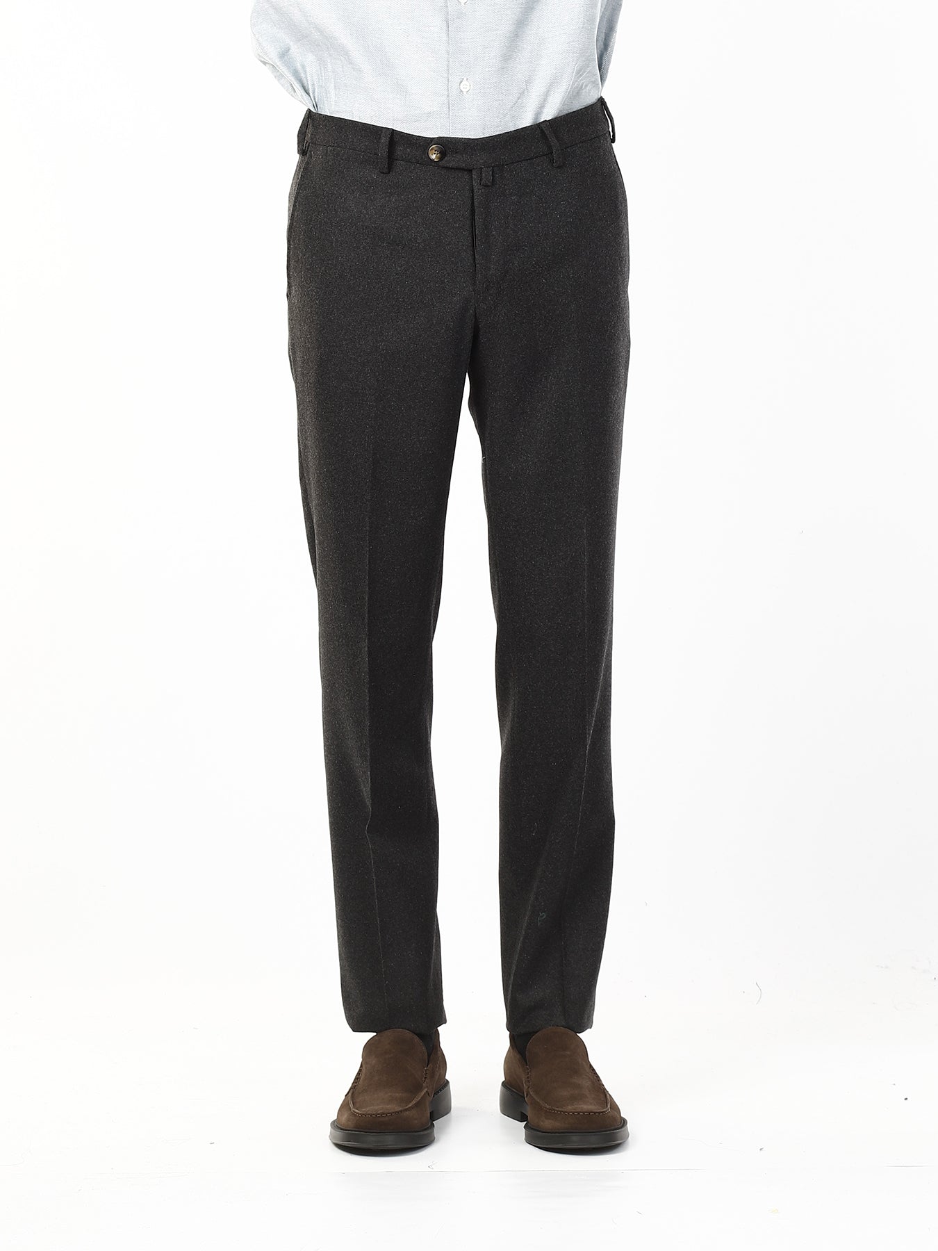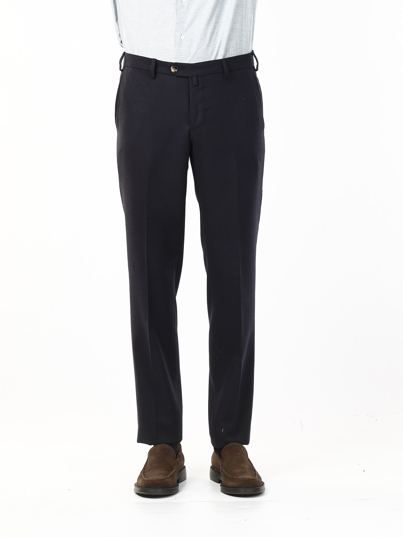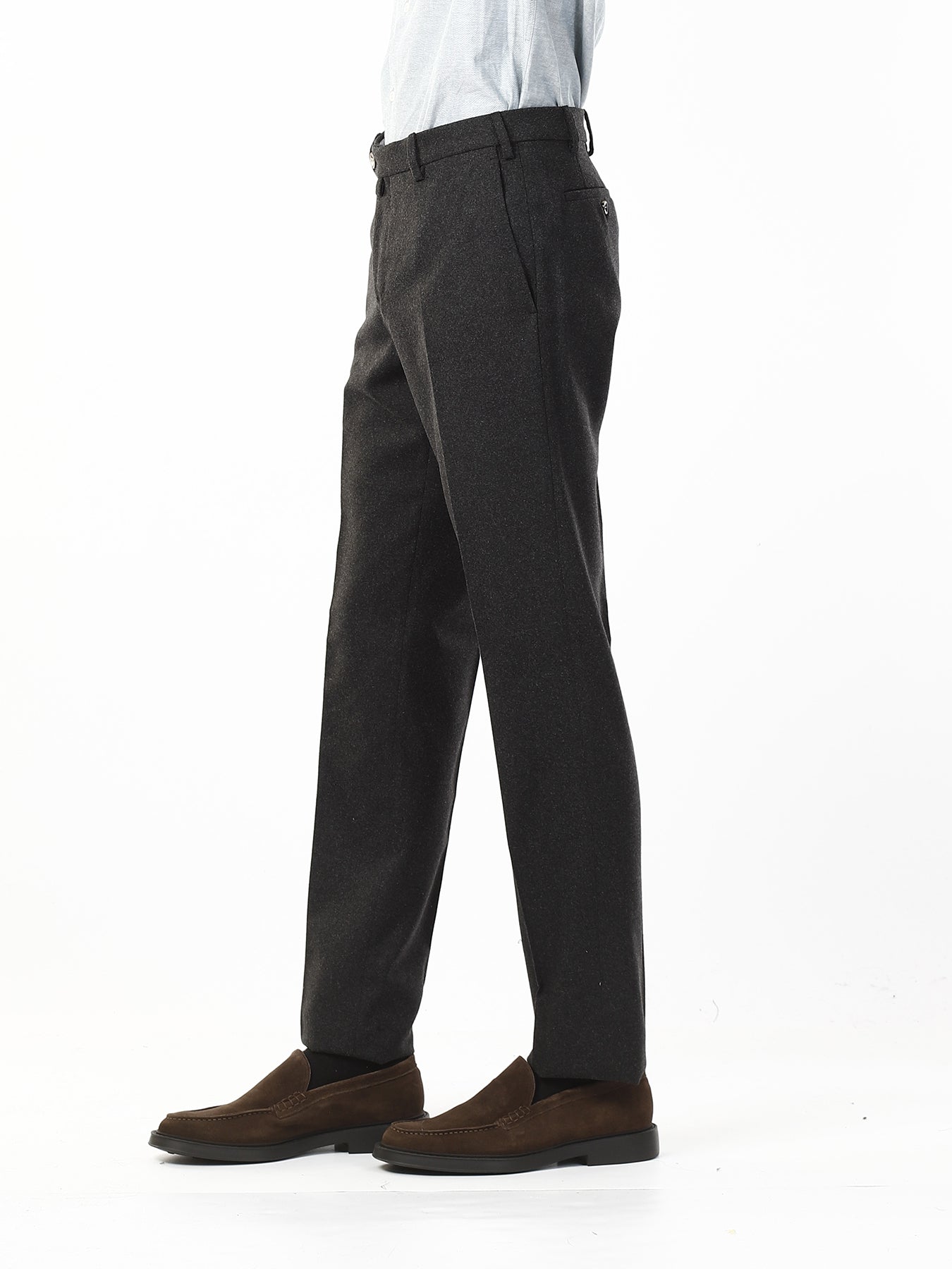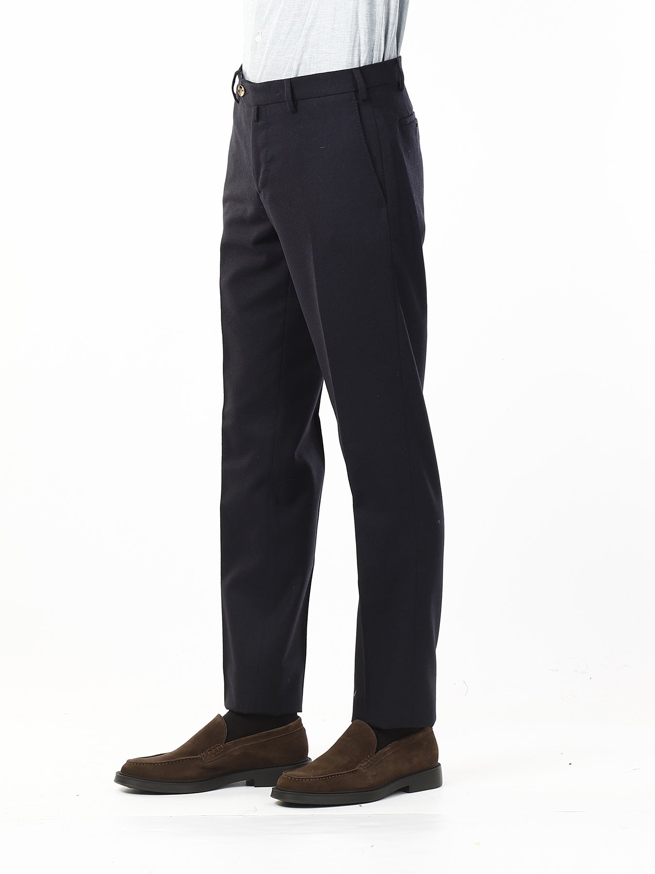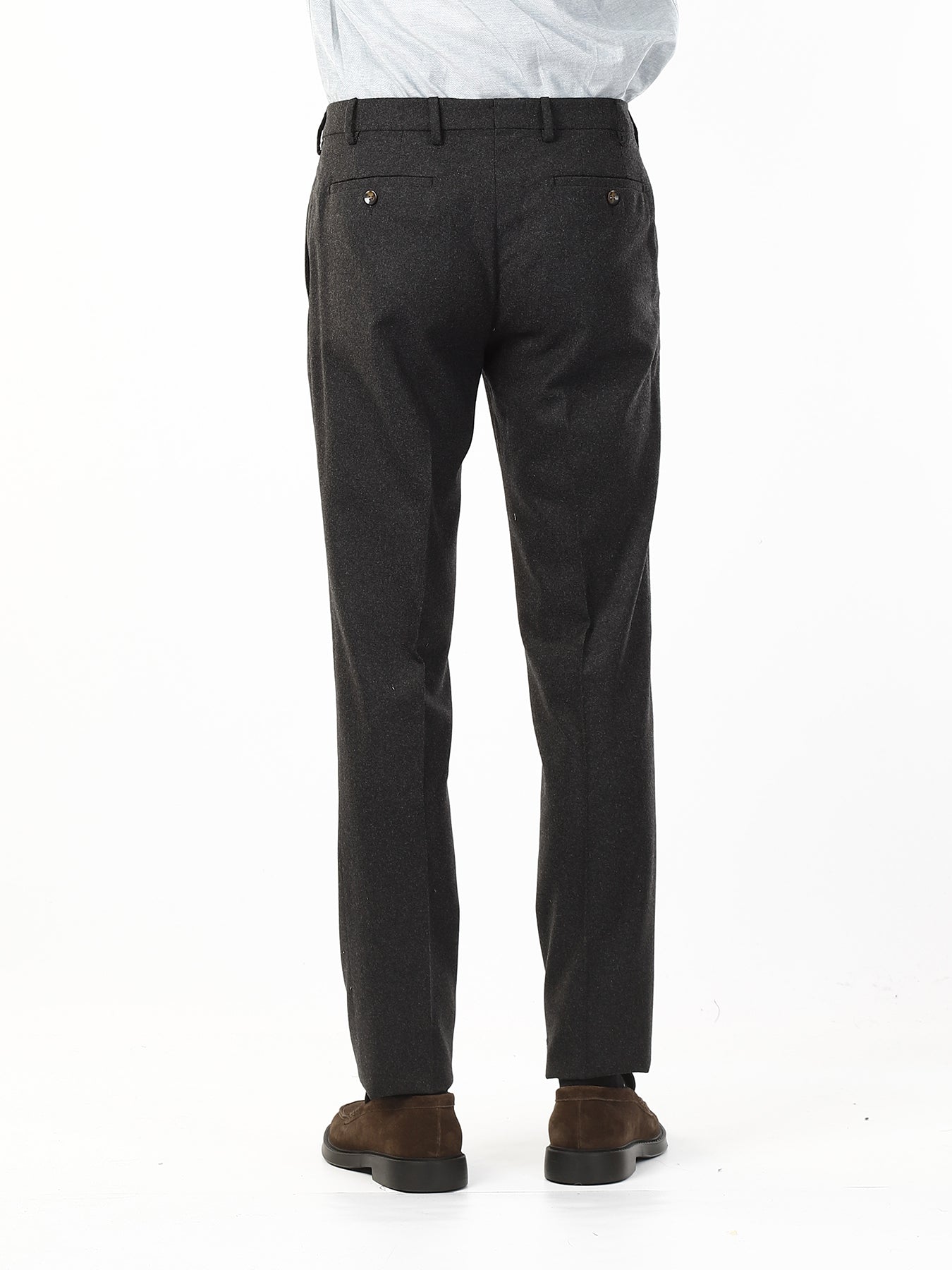 Realizzati in misto lana di alta qualità, questi pantaloni offrono una vestibilità confortevole e un aspetto elegante, perfetto per occasioni formali o per un look da ufficio sempre impeccabile. La tasca all’americana enfatizza la linea pulita e classica del capo, donando un tocco di sobria raffinatezza. Il taglio, leggermente più tradizionale, conferisce struttura e valorizza la silhouette maschile con naturalezza.
