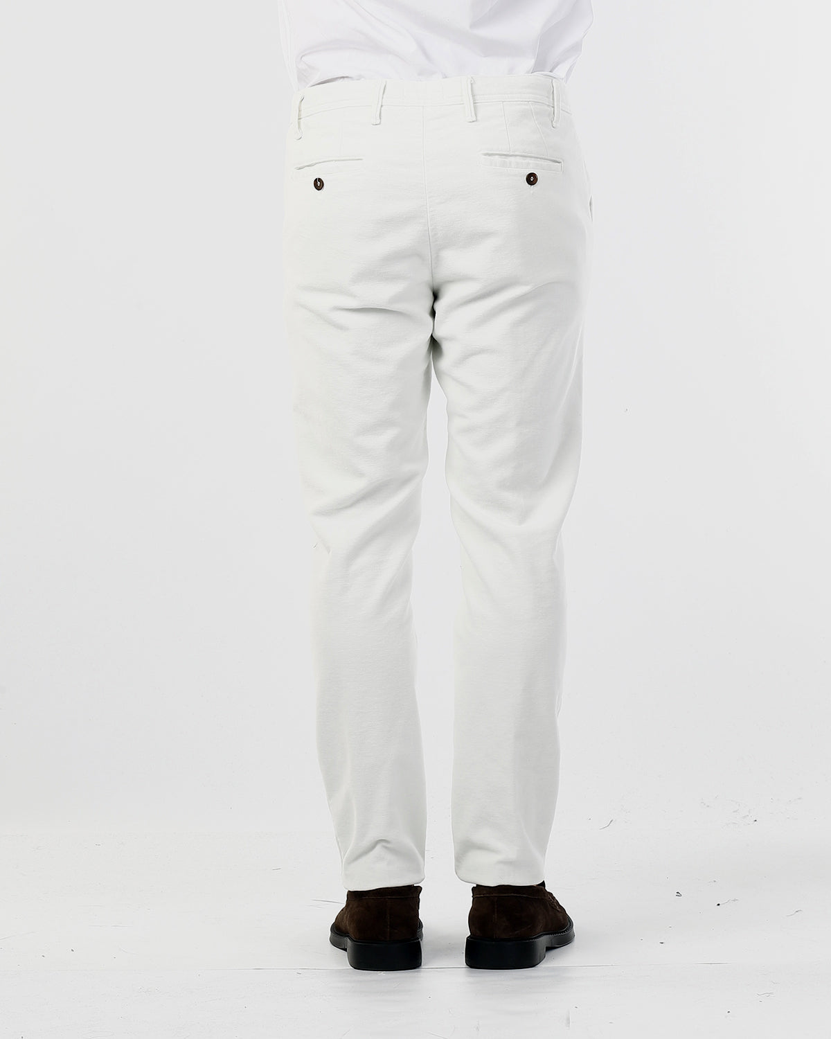 Realizzati in misto caldo cotone, questi pantaloni garantiscono una sensazione di morbidezza e calore, ideale per le stagioni più fredde. Il modello retto assicura una vestibilità comoda e versatile, mentre le tasche laterali e posteriori offrono praticità senza rinunciare all’eleganza discreta del capo. Disponibili in diversi colori, si adattano perfettamente a look casual e rilassati, diventando la scelta ideale per accompagnare ogni momento della giornata.