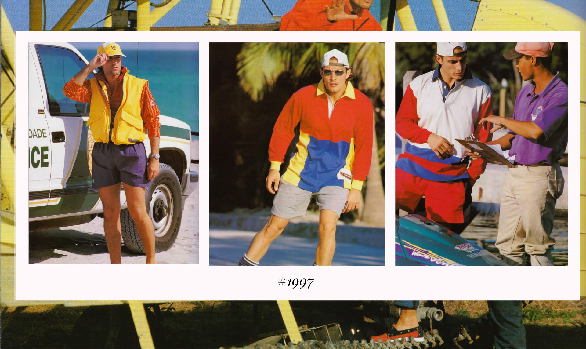 Gli abiti, le calzature e persino le acconciature risentono di molteplici influenze stilistiche e si dividono tra una moda finto trasandata grunge e uno stile college. In realtà, queste sono le immagini pioniere che hanno segnato la storia della moda italiana, dove un bermuda e una classica polo, seppur così semplici, facevano da must have.