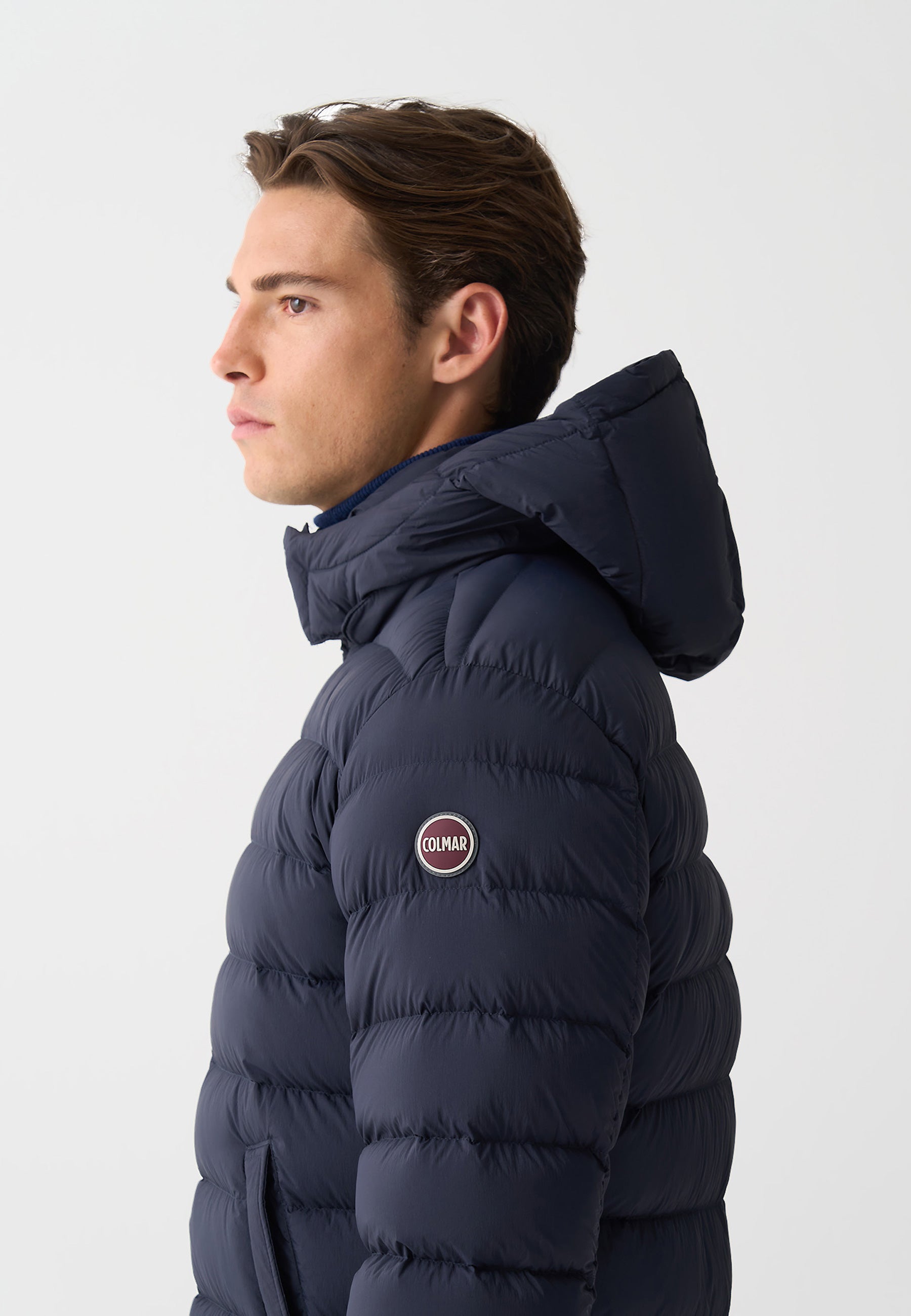 Affronta l’inverno con il piumino Colmar con cappuccio staccabile, un capo che unisce praticità, design e performance. Realizzato in tessuto 100% riciclato, è imbottito in piuma naturale per offrire calore elevato e leggerezza, mantenendo il massimo del comfort anche nelle giornate più fredde.