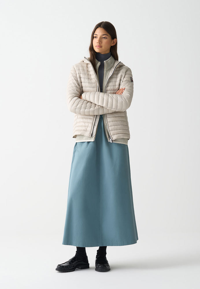 Caratteristiche principali: piumino leggero con cappuccio ; imbottitura in piuma naturale