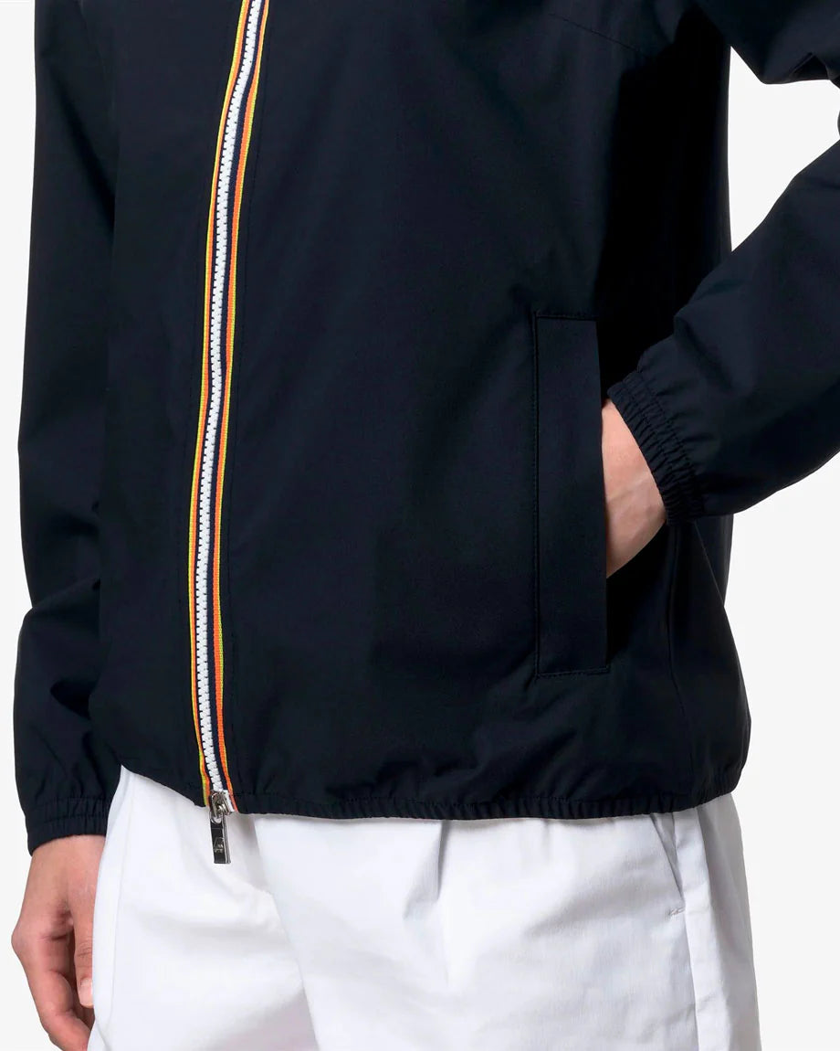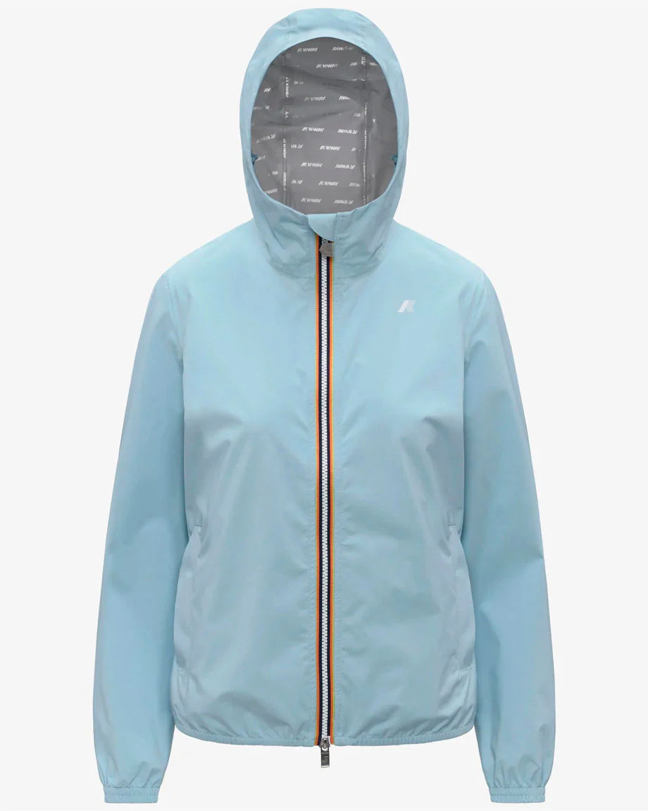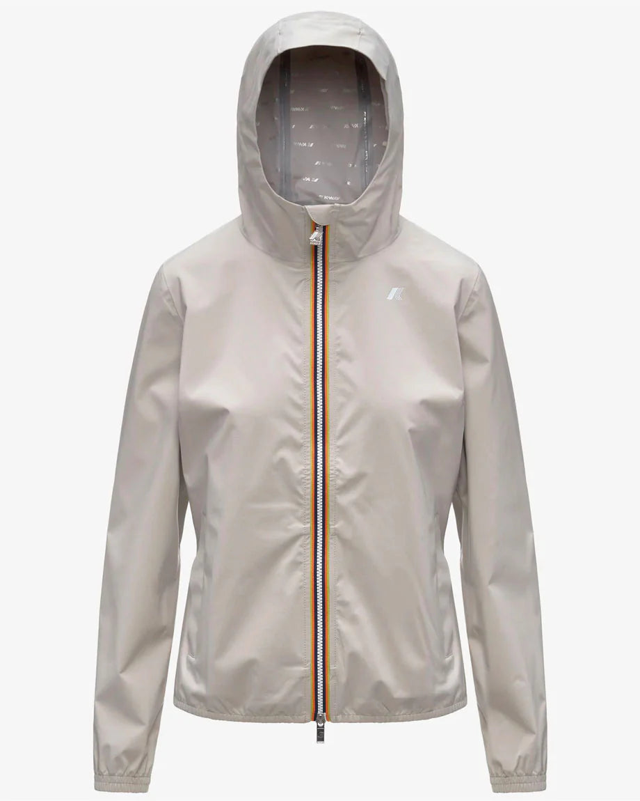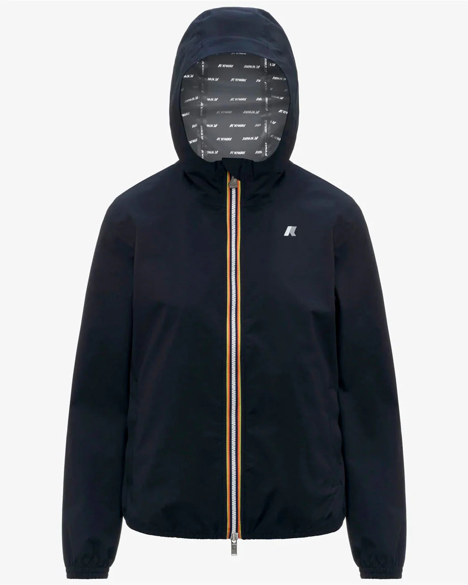 La fodera interna stampata all over con lettering K-Way argento aggiunge un dettaglio distintivo e moderno. Il cappuccio rimovibile permette di adattare il look e la funzionalità alle diverse esigenze, mentre polsini e fondo elasticizzati assicurano stabilità e comfort durante l’utilizzo.