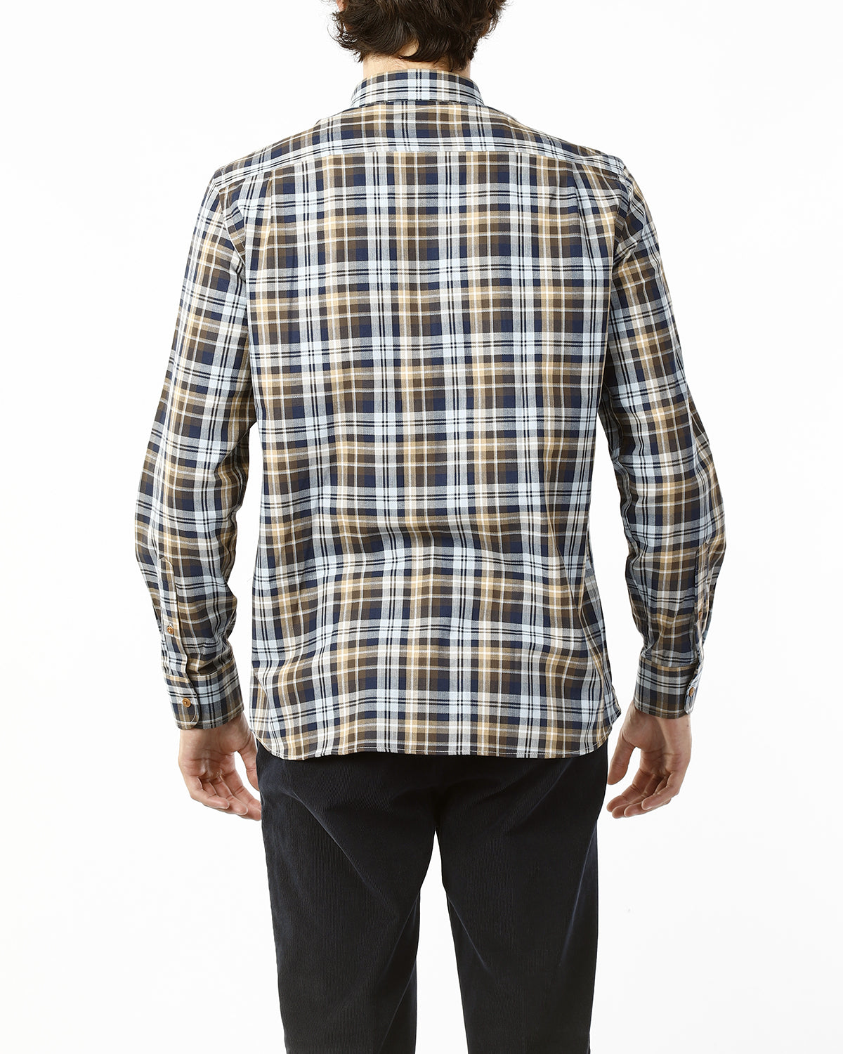 Realizzata in flanella morbida e calda, questa camicia offre una sensazione di comfort ideale durante l’autunno e l’inverno. Il design presenta un collo button down e bottoni in corozzo; mentre la fantasia a quadri sui toni del beige dona un carattere classico ma sempre attuale, perfetto per outfit casual o smart-casual.