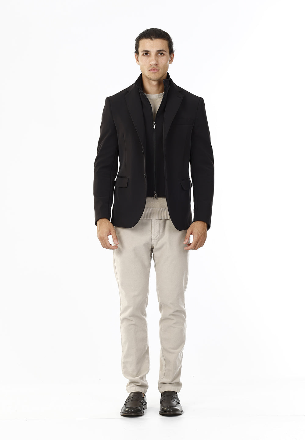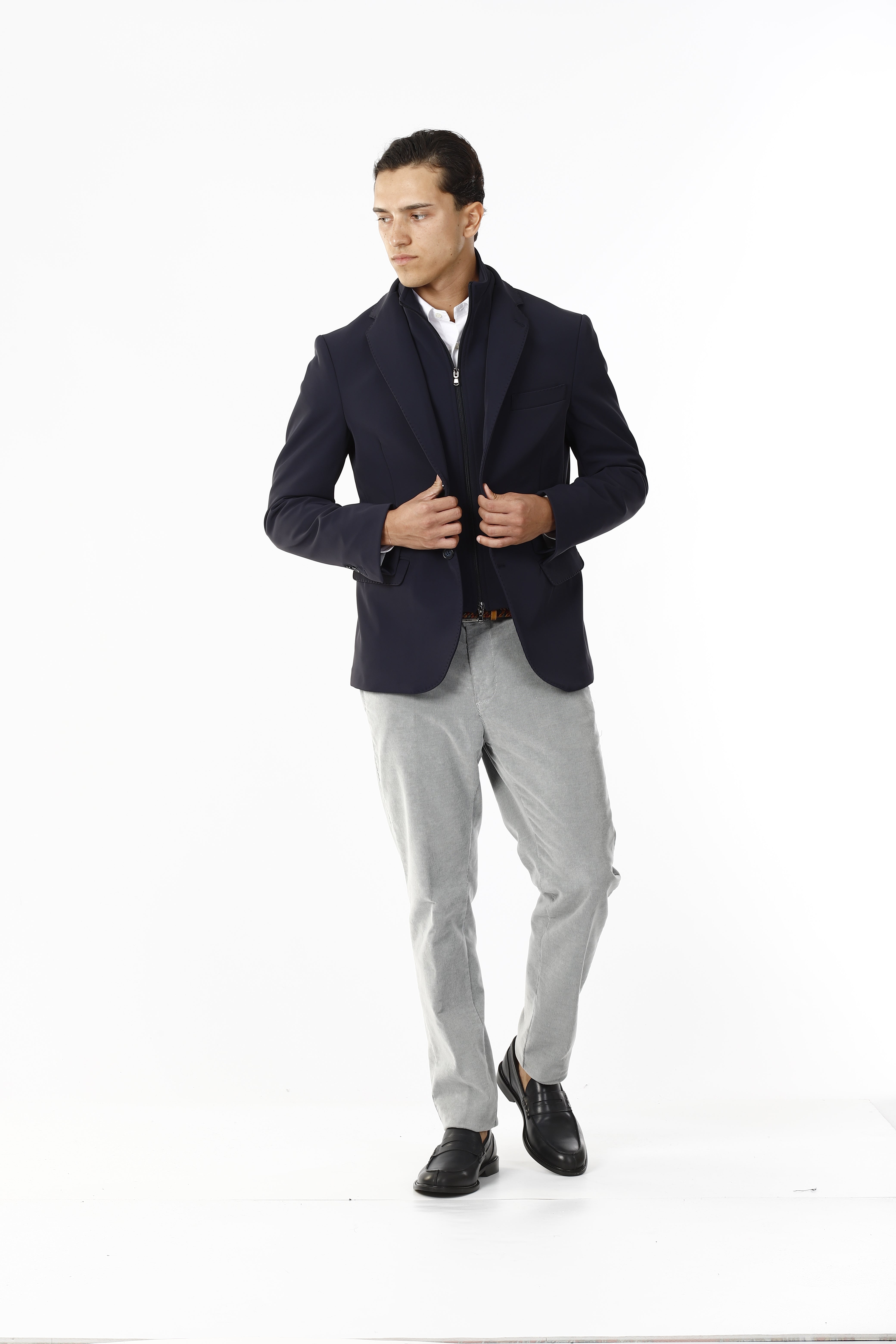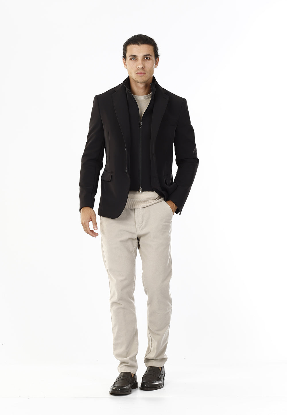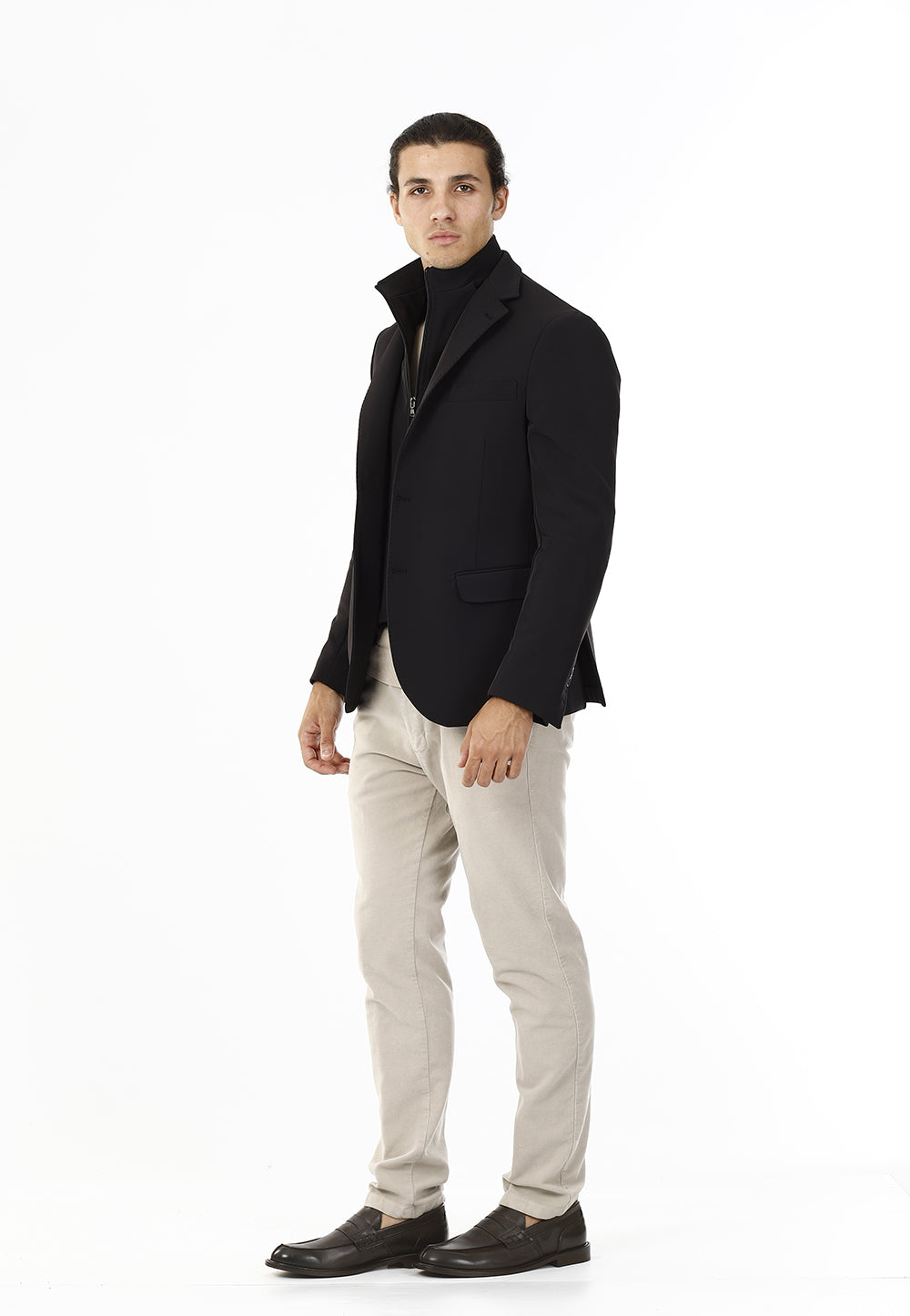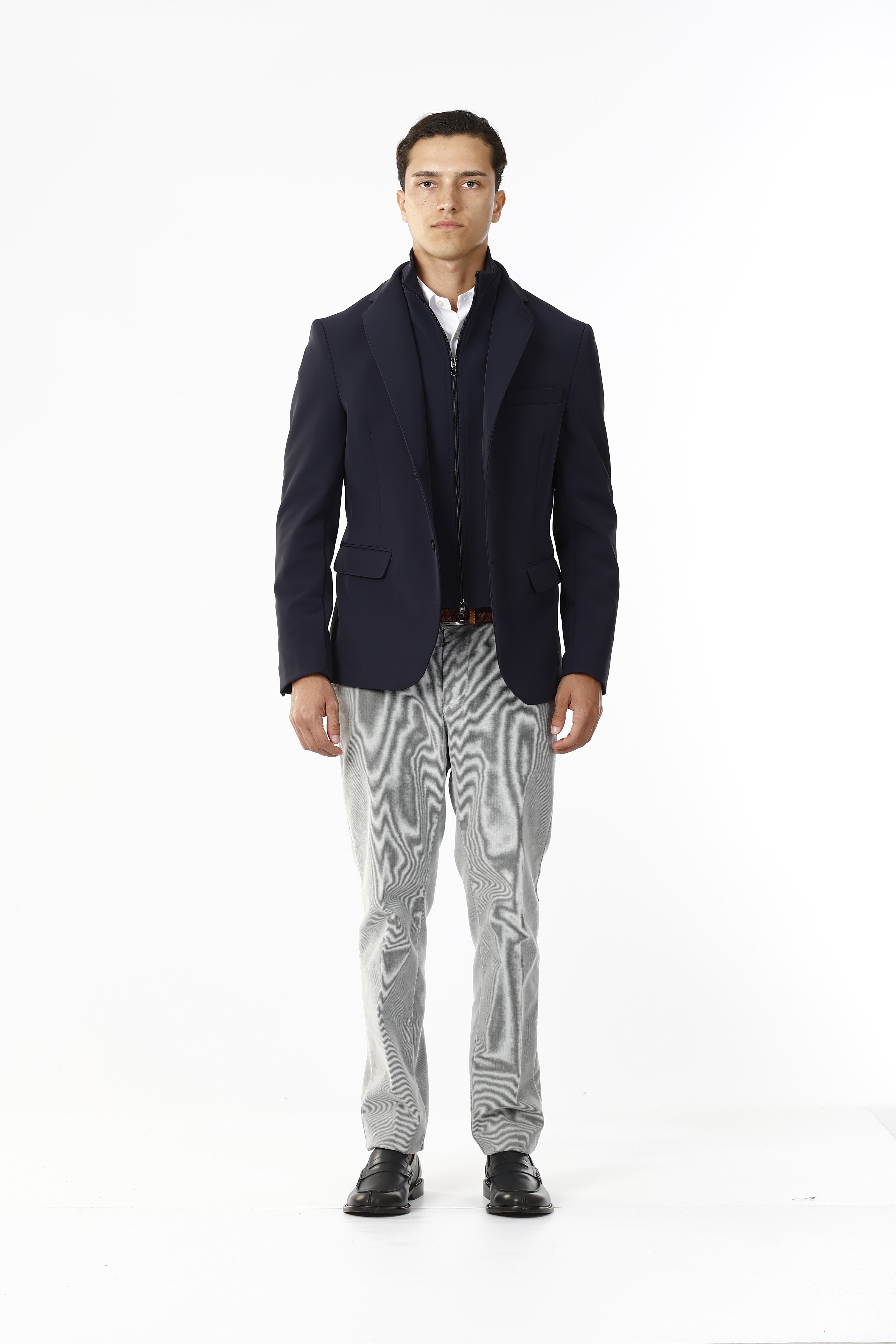 Modello: giacca due bottoni ; pettorina con cerniera integrata