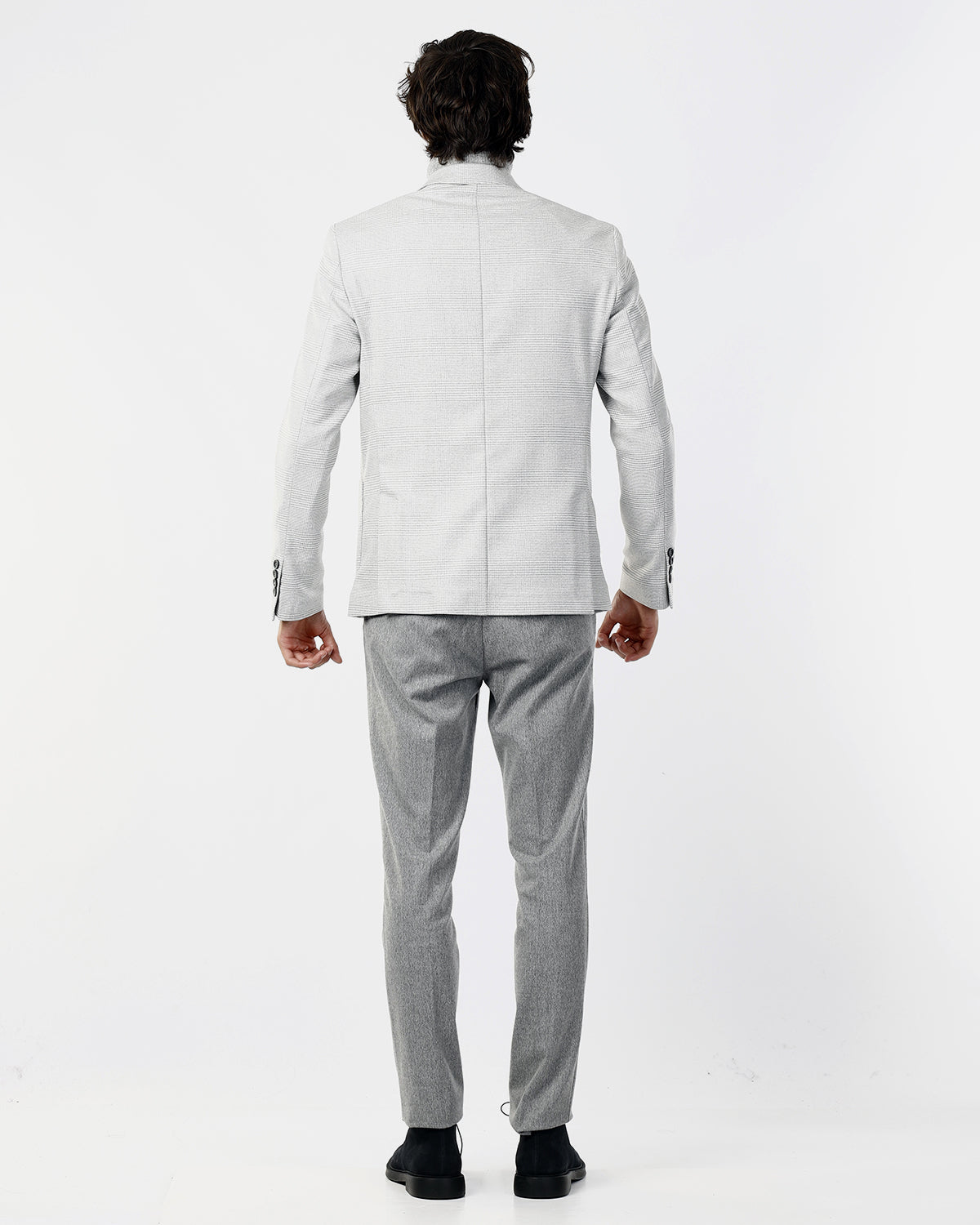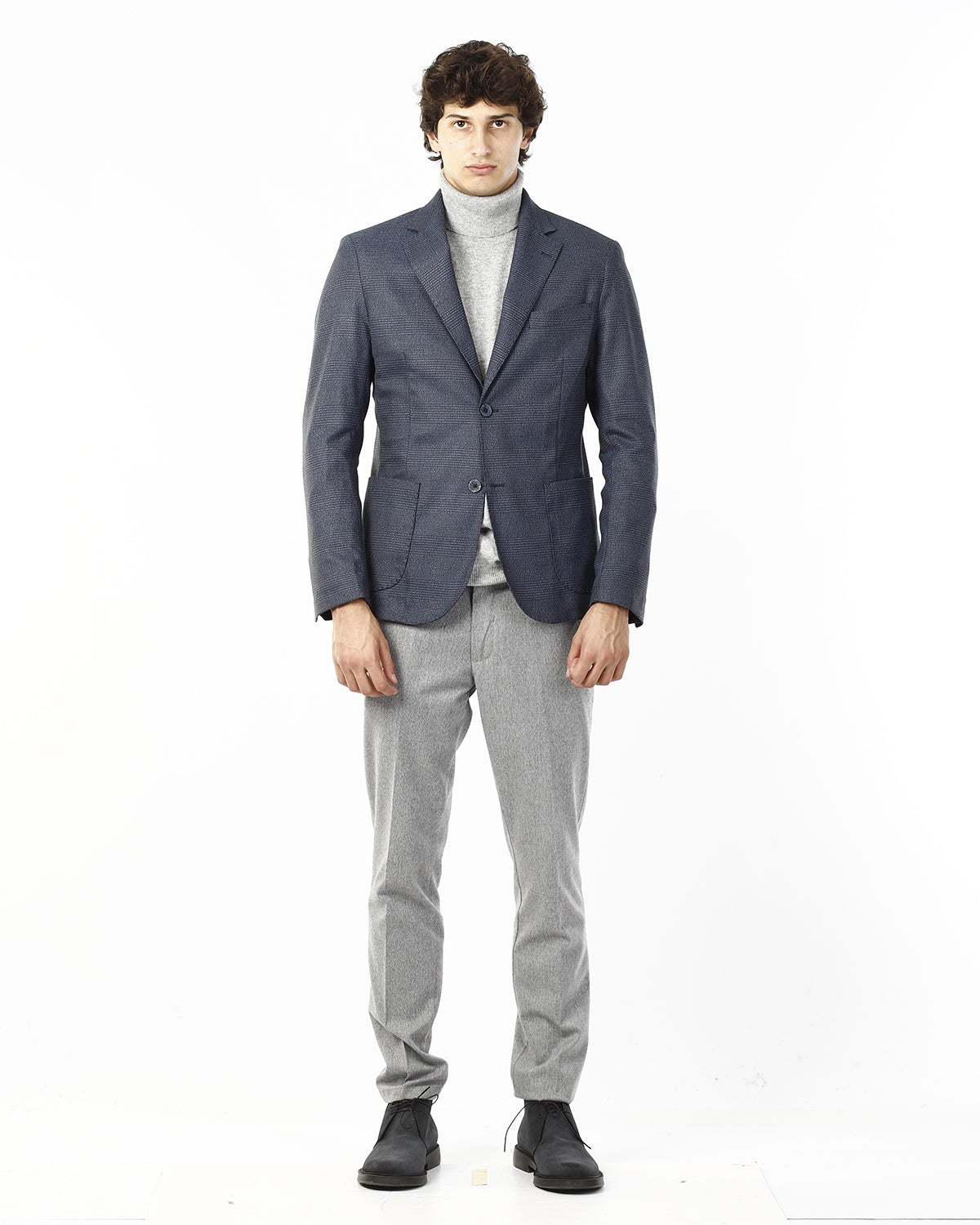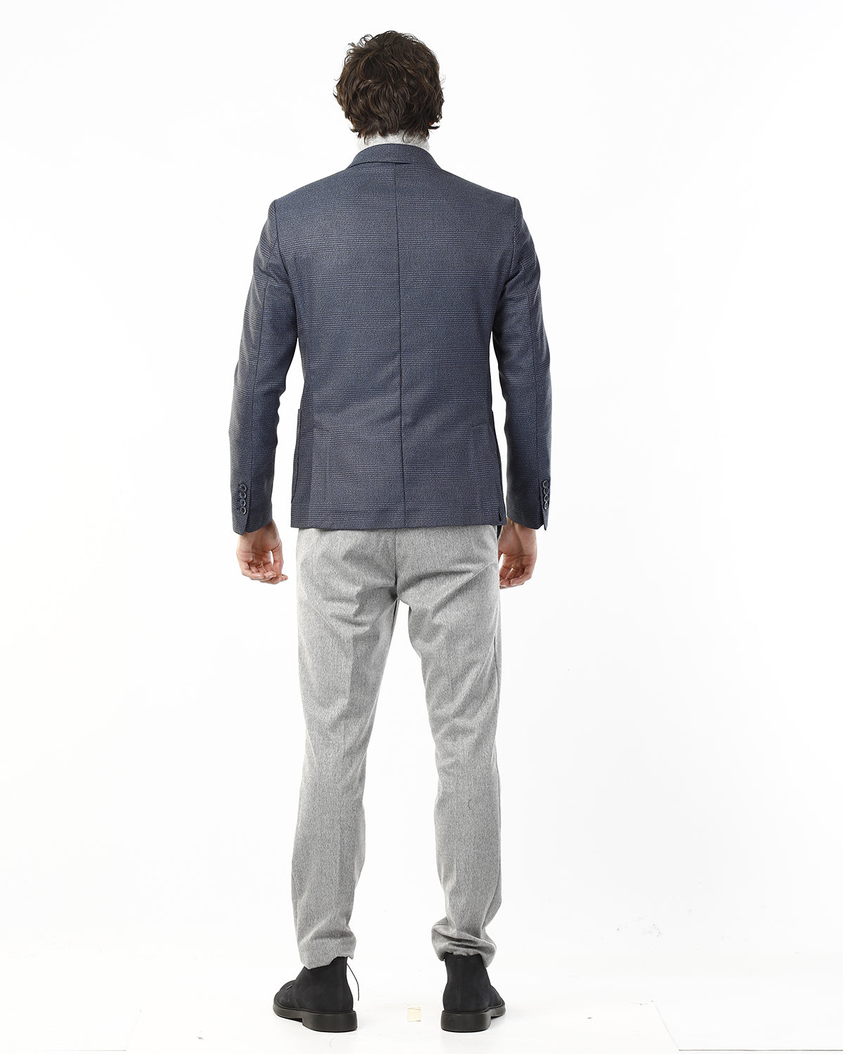 Questa giacca monopetto è realizzata con una chiusura a due bottoni e presenta un taglio moderno e impeccabile, studiato per valorizzare la figura e garantire massimo comfort. Sul fronte troviamo due tasconi e un taschino sul petto, dettagli che richiamano lo stile british e aggiungono carattere al design.