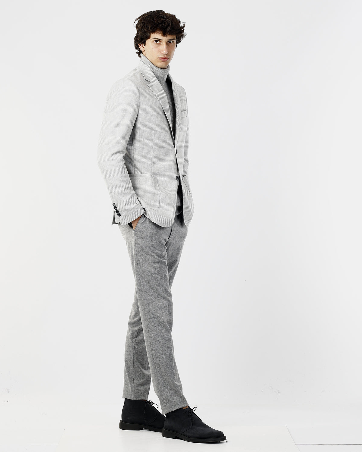 La fantasia Principe di Galles tono su tono, elegante e mai eccessiva, dona al capo una personalità ricercata e discreta, ideale sia per outfit formali sia per look casual sofisticati.