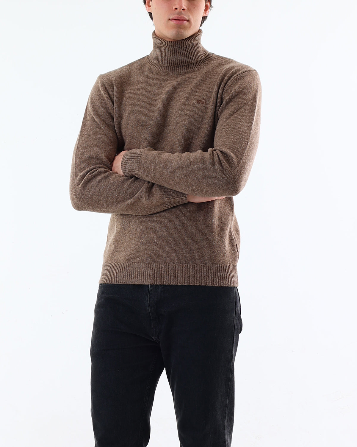 Modello: collo alto ; maglia doppia ; logo ricamato